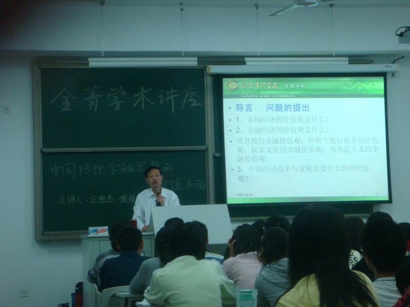 科协承办的“金菁学术讲座”10月16日晚18:30在敏达楼312教室开讲。院长汪祖杰教授作了题为《中国传统金融思想的价值取向》的讲座。