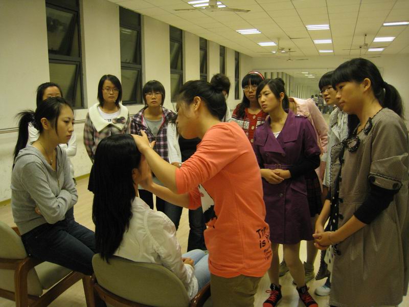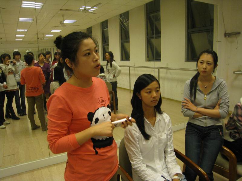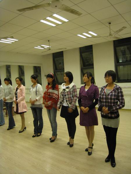 2010年10月16日晚,金融院女生部礼仪队于润园操场体操房内进行了本届新礼仪的第一次礼仪培训。我部有幸邀请到了原校礼仪队副队长徐雪君等两位学姐,为礼仪们在化妆及礼仪工作方面进行了指导。
