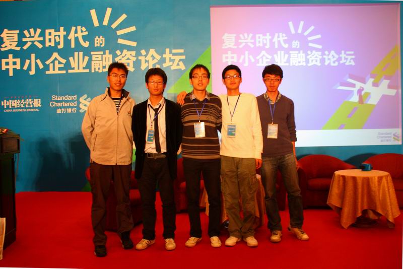 学生代表王弘成、丁辰、王立中、李林、胡佳腾等5人受邀参加了由《中国经营报》和渣打银行联合主办的“复兴时代的中小企业融资论坛”,与政府官员、专家学者、企业家代表进行了近距离的接触与交流。此次论坛旨在后金融危机时代为中国中小企业寻找适合的融资方式,为中小企业开辟更广阔的发展道路。