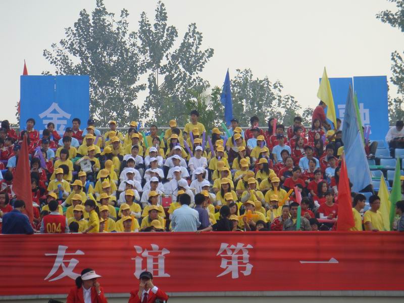怡红院 的出场方阵也是一大亮点,学生组成奥运五环形状,腰鼓队穿插其中,整个过程洋溢着运动和青春的激情。此外,怡红院 的“古钱币”形啦啦队方阵更是一个创意的结晶,从人员配备、装束的整齐划一到加油所用的道具都让整个啦啦队方阵显得气势格外宏大。
