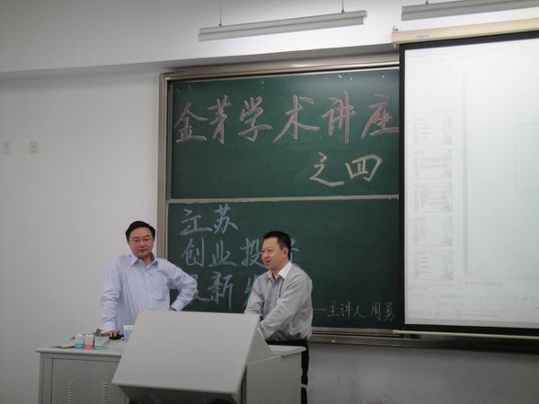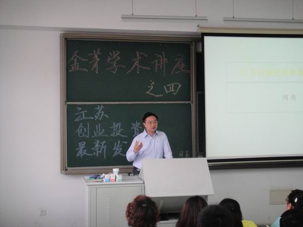2011年5月11日下午,应科研处和怡红院 邀请,江苏省期货业协会会长、江苏弘业国际集团有限公司总裁、江苏弘业期货有限公司董事长、教授级高级经济师周勇博士开展了题为“江苏创业投资最新发展”的学术讲座。怡红院 院长高雷教授主持了此次讲座。
