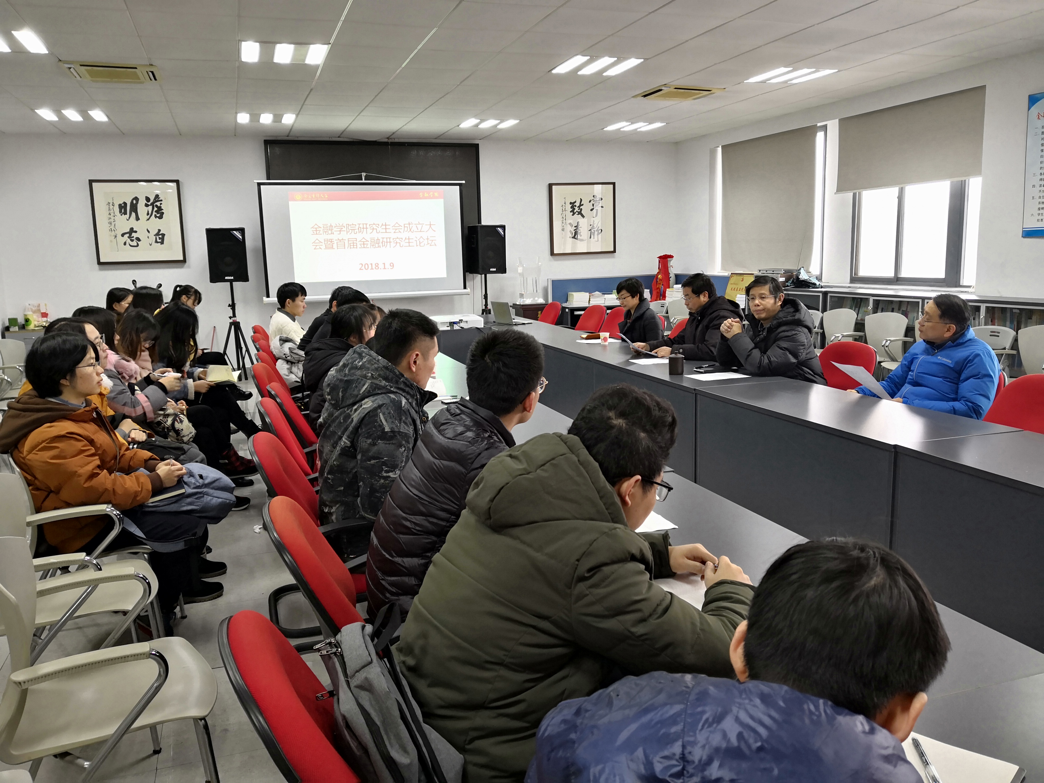 2019年1月9日下午,在浦口校区敏达楼516会议室怡红院 研究生会成立仪式暨首届“南审金融研究生论坛”成功举办。怡红院 副院长石岿然教授主持了仪式与论坛,参与本次论坛的还有怡红院 党总支书记陆凯旋教授、孙清教授、怡红院 金融专硕项目负责人刘妍副教授、部分研究生导师、怡红院 金融硕士研究生。