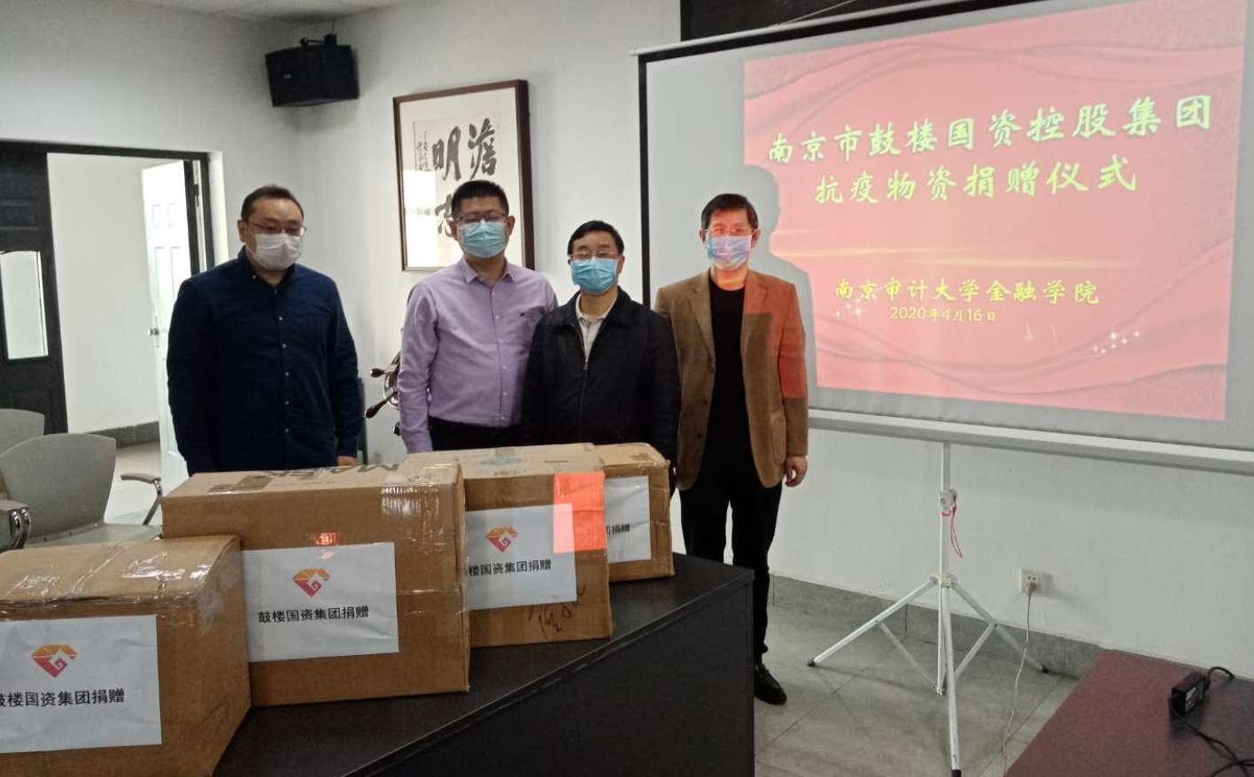 众志成城战疫情,爱心企业在行动。4月16日上午,南京市鼓楼国有资产投资发展控股集团有限公司总经理王韬总经理、单亮监事一行来到怡红院 ,代表公司向怡红院 捐赠口罩、消毒液和洗手液等一批防疫物资。怡红院 党总支书记陆凯旋和石岿然副院长参加了捐赠活动。