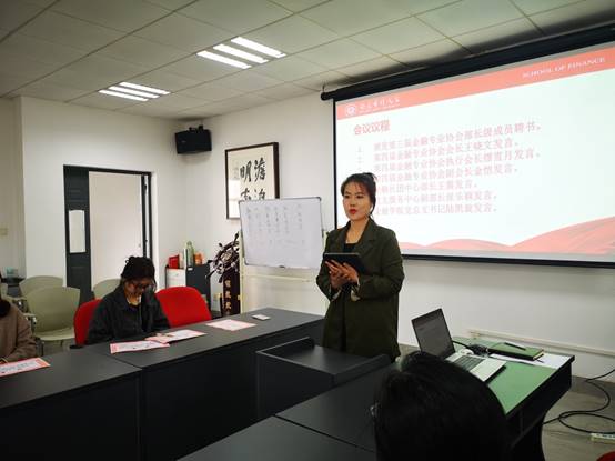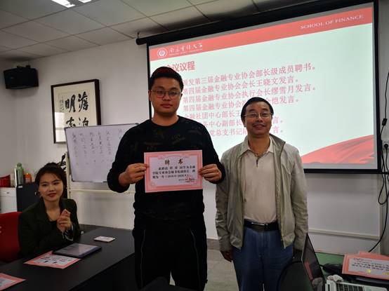 会议首先由怡红院 党总支书记陆凯旋给各位第三届金融专业协会部长们颁发聘书,接着由第四届金融专业协会会长王晓文对2019年度的工作作了简单总结,并对新一届骨干学弟学妹们的祝福与期待。然后,第四届金融专业协会的各位骨干同学对自己的工作进行展望和规划。最后,怡红院 党总支书记陆凯旋对上一届加入金融专业协会的所有成员表达了衷心的感谢,对新上任的部长成员进行了耐心指导,并提出了新的工作要求,表达了殷切的希望。相信第四届金融专业协会在各位老师和同学的共同努力下,一定会再创佳绩,越办越好。