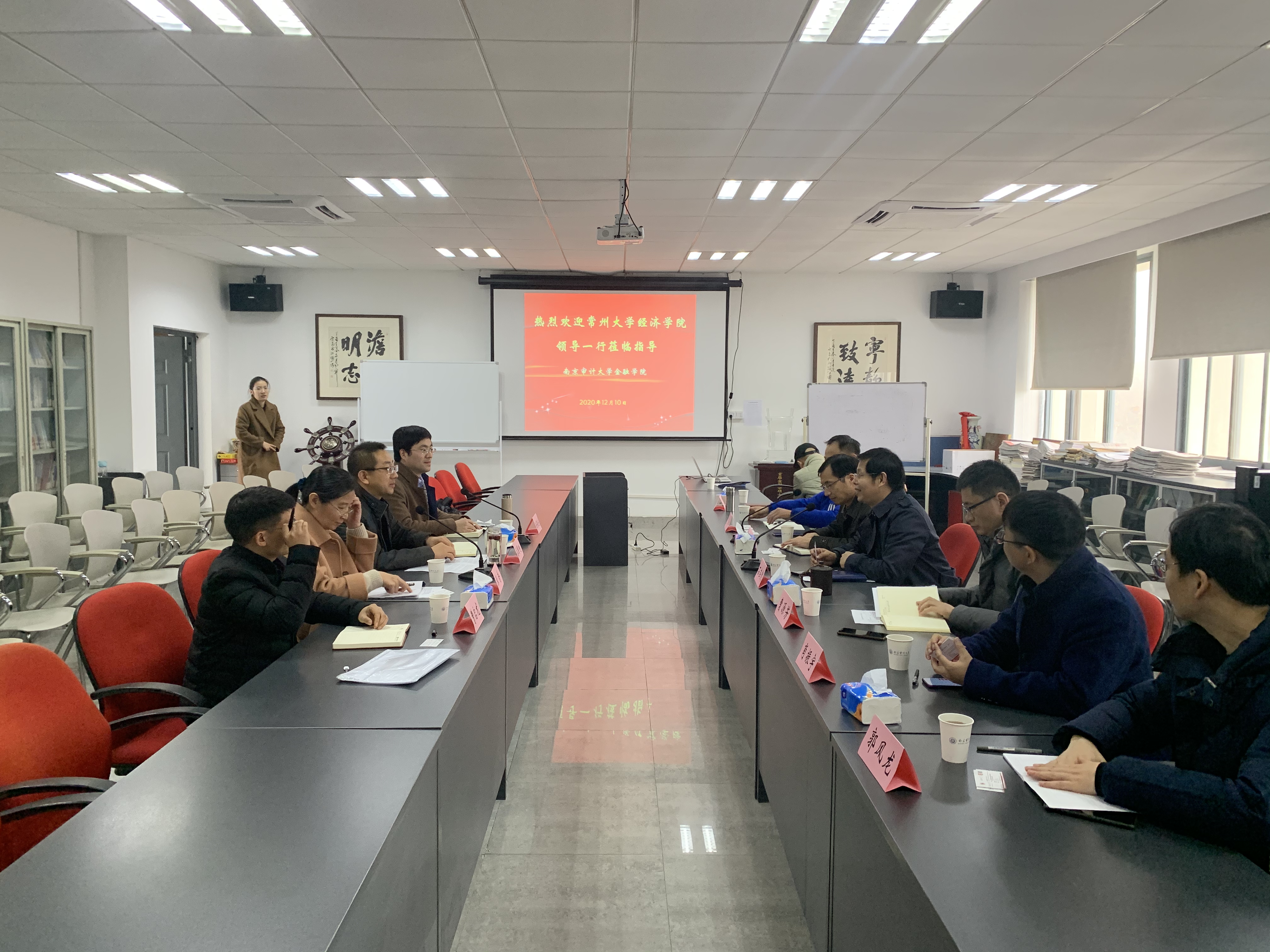 12月10日下午,常州大学经济学院院长姜国刚、副院长张普、副院长任保全、院长助理曹启龙一行来访我校怡红院 。怡红院 院长石岿然、副院长谷政、金融系主任曹源芳、投资系主任严伟祥、保险系主任罗琰、信用管理系主任肖振宇、金融工程系主任郭风龙出席交流座谈会。