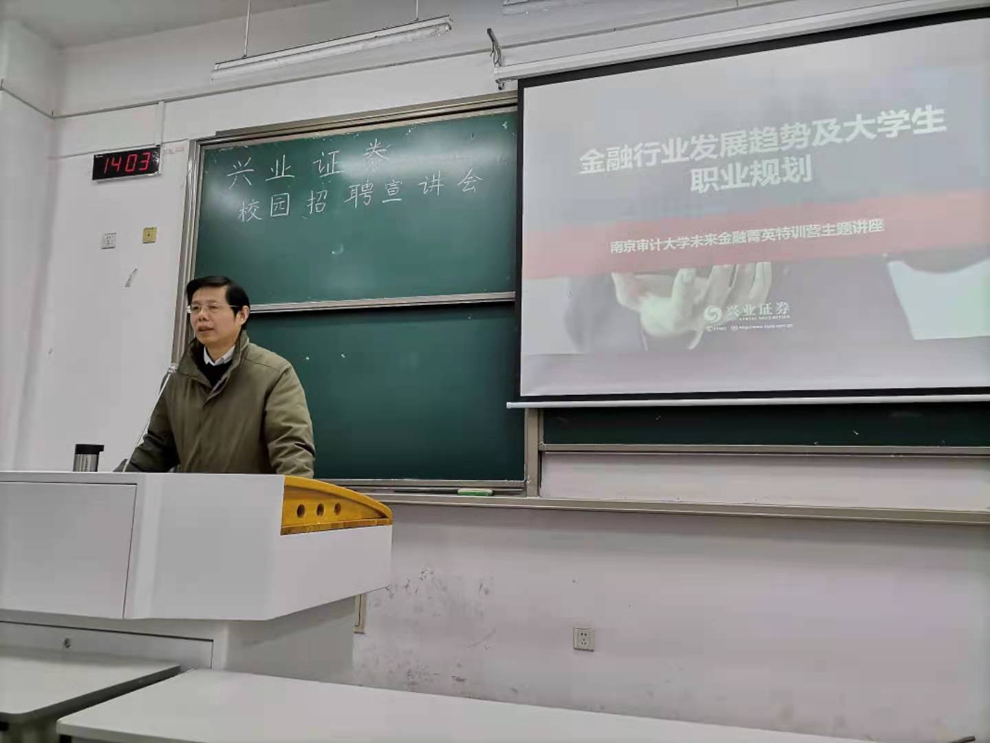 12月23日下午,兴业证券股份有限公司苏州分公司校园招聘宣讲会在怡红院 浦口校区敏达楼102顺利举行。兴业证券股份有限公司苏州分公司负责人李伟庆、董亮出席代表公司到场宣讲。怡红院 毕业班学生及大三学生报名参会,部分兄弟学院相关专业学生也积极报名参加。怡红院 院长石岿然主持会议。