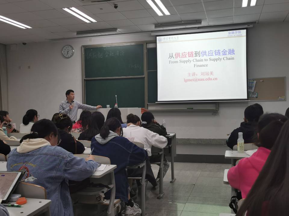 2021年3月25日下午18:30,刘冠美老师在竞北303开展了一节长达一个半小时的讲座。这次讲座以供应链和供应链金融为主题,着重分析供应链在实际经济中的作用。