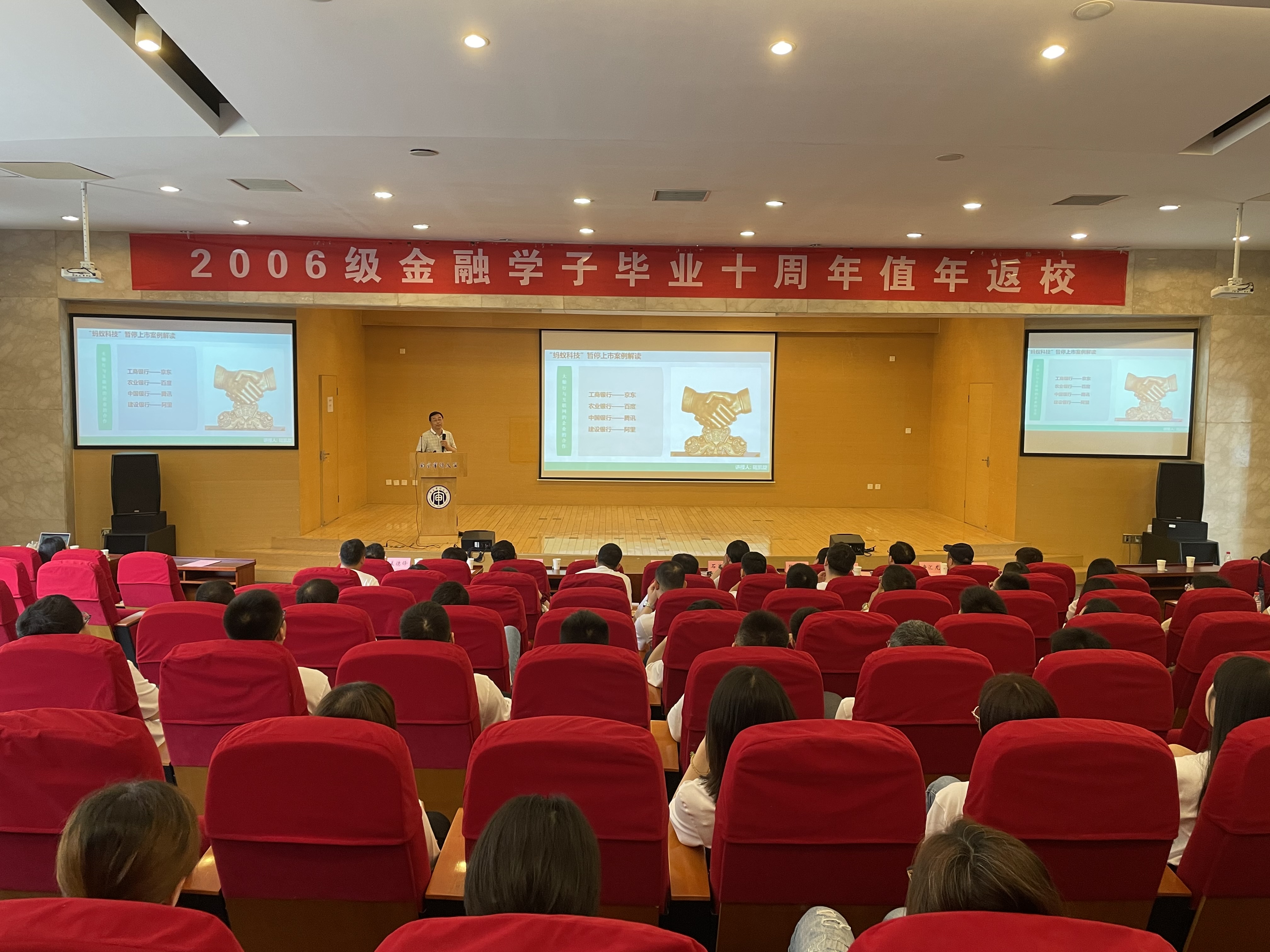 今天的校友会,有优秀校友的无私分享,有领导老师们的谆谆教诲,在场每个人都百感交集。忆青春,再回首,让我们积蓄力量,砥砺前行。最后,师生们集体合影留念,每一张面孔都仿佛回到了十年前的青葱岁月,有同学们的意气风发,更有老师们的殷切期待。温馨感人的校友交流活动在热烈的掌声、爽朗的笑声、激动的泪花中结束了。据悉,校友们当天还参观了学校的货币博物馆,举行了各班级的班会活动。饮水思源,学成怀耕。校友,既是一个身份称谓,更是一种情感认同、文化认同。母校的发展是校友们永恒的牵挂,母校的卓越助力每一个校友的幸福和自豪。