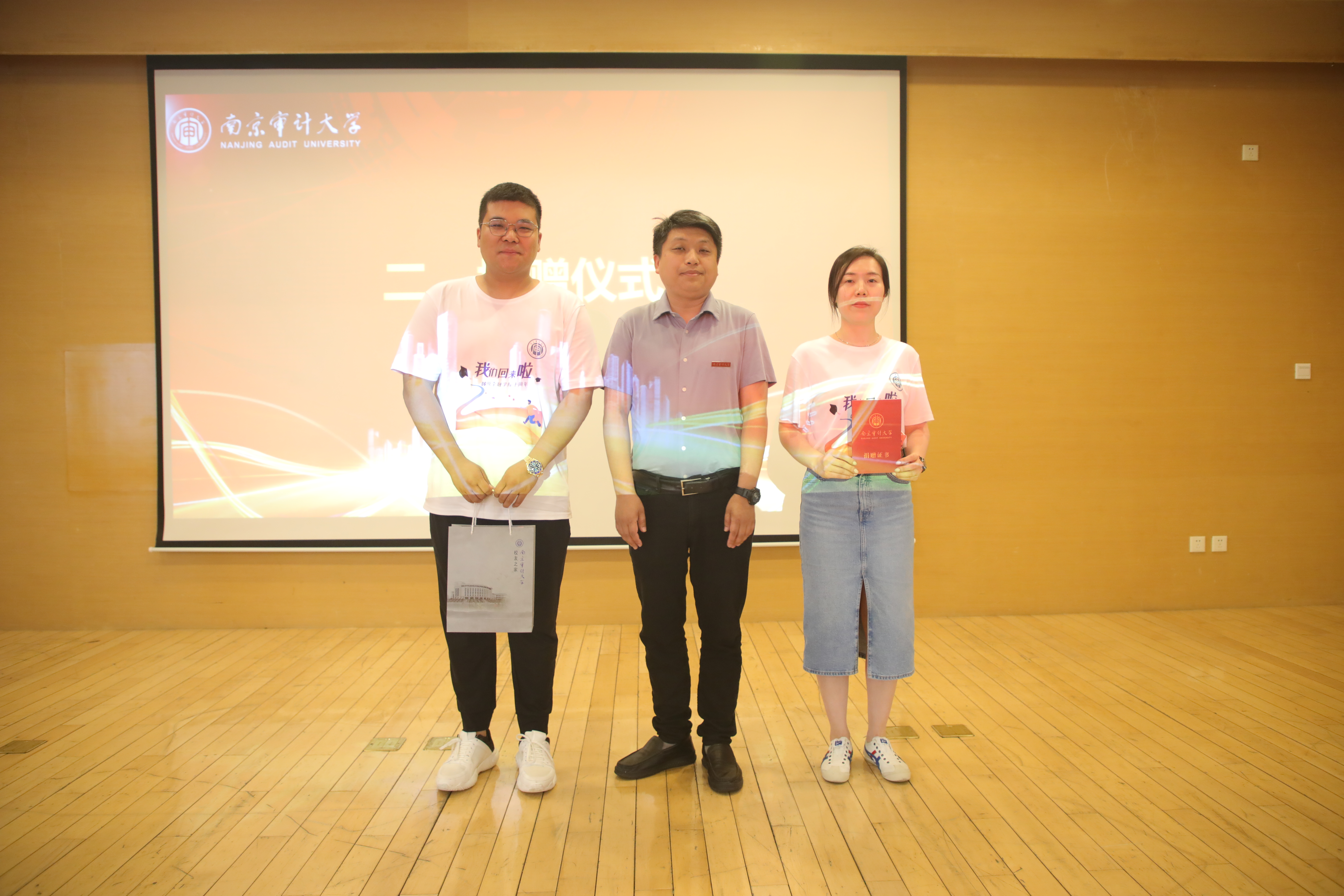 校友办张林林副主任为校友代表颁发了校友林捐赠认领证书,并为校友们赠送了校友卡等伴手礼。刘骅副院长代表怡红院 上台接受了校友们集体赠送给学院寓意吉祥的纪念品。