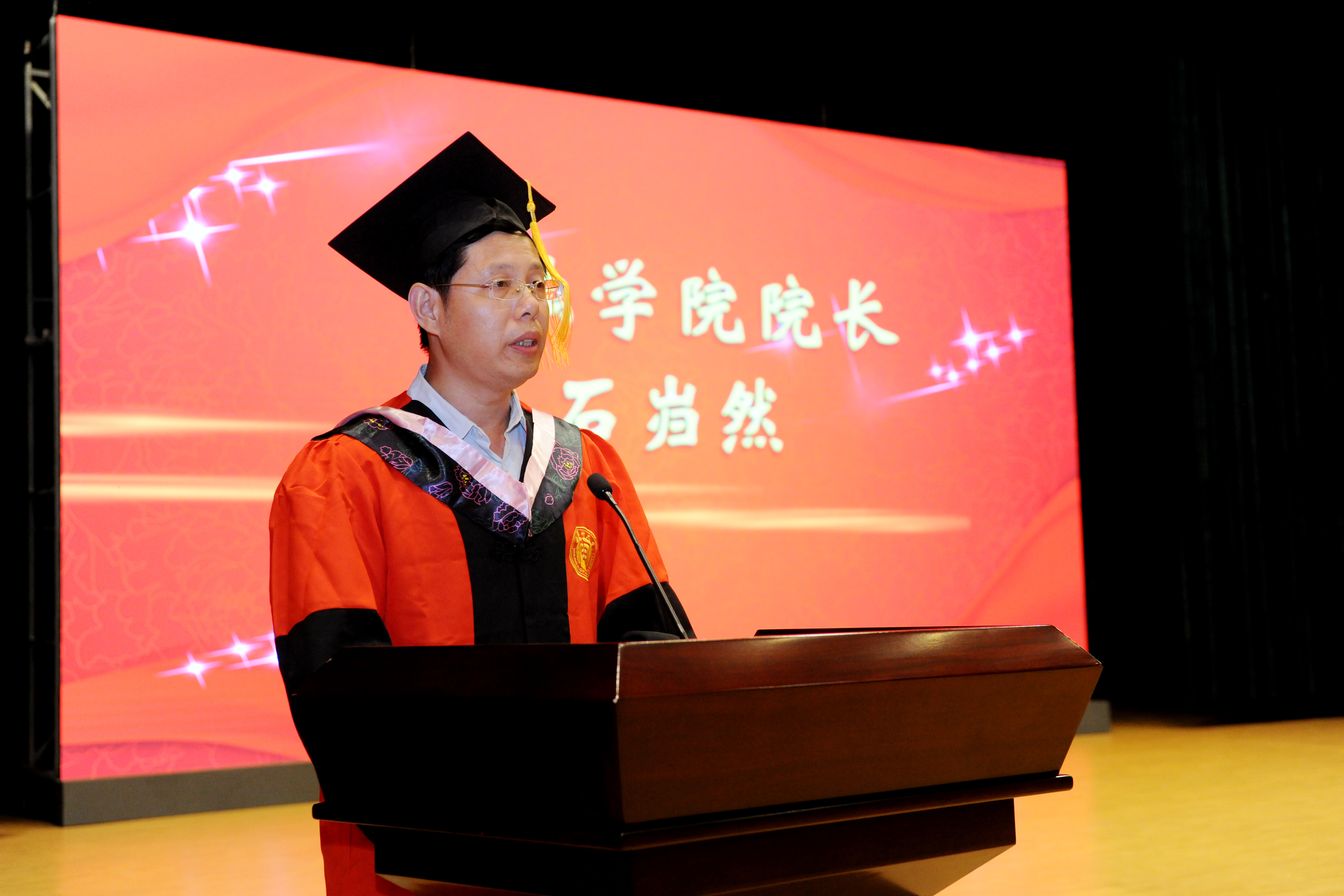 石岿然院长向毕业生们赠言。他首先向圆满完成学业的学子们致以祝贺,向悉心教导的老师们表示感谢。他表示,今年毕业季恰逢中国共产党成立100周年,面对这样一个充满机遇,孕育梦想的崭新时代,他希望毕业生们:一要坚定信心,胸怀祖国,坚守理想,爱岗敬业,开拓进取,在新时代的浪潮中砥砺前行,让青春在为祖国、为人民的奉献中焕发出更加绚丽的光彩;二要坚持学习,增强知识更新的紧迫感,既要孜孜不倦、博览群书,又要心无旁骛,择其精要;三要坚守底线,心存敬畏,将正确的道德认知、自觉的道德养成、积极的道德实践紧密结合起来,做到诚实守信、宽厚包容、质朴率真。他强调,无论学子们走向何方,怡红院 永远是心灵港湾与精神家园。