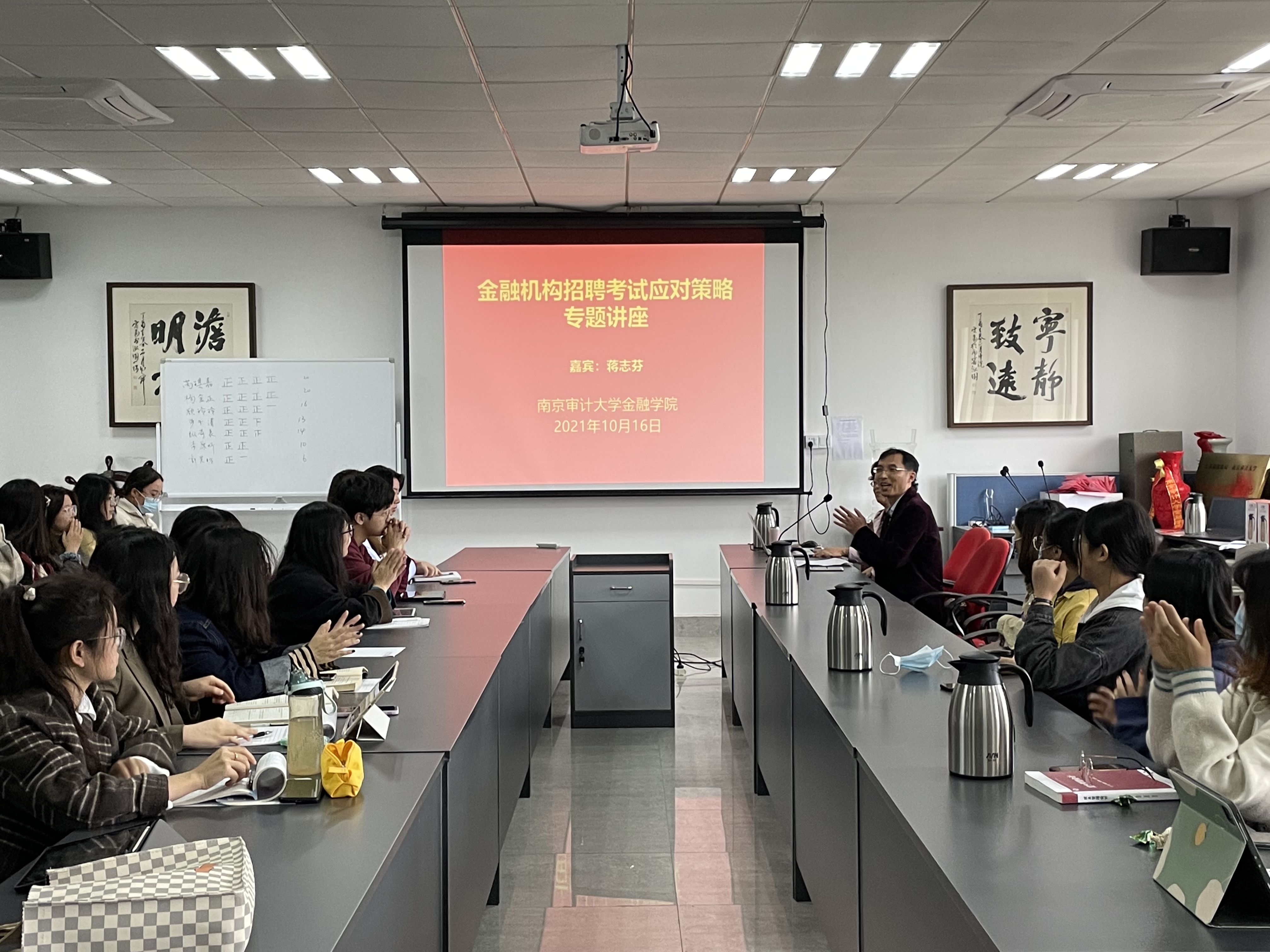 为响应党中央号召,贯彻省委和省教育工委以及学校党委关于在党员干部中开展“两在两同”建新功行动的部署要求,同时结合第六轮巡察中反馈的问题,怡红院 继续开展“我为师生办实事”实践活动,针对学生群体面临的就业困惑举办专场讲座。本次讲座邀请了学院荣退教授、原党总支书记蒋志芬教授于10月16日下午亲临敏达楼516会议室作题为“银行招聘考试应对策略”专题报告,旨在帮助志向加入金融机构工作的同学更好了解及应对银行等金融机构招聘考试。怡红院 毕业班学生及大三学生报名参会,部分兄弟学院学生闻讯也积极报名参加。怡红院 党委书记谷政主持本次讲座。