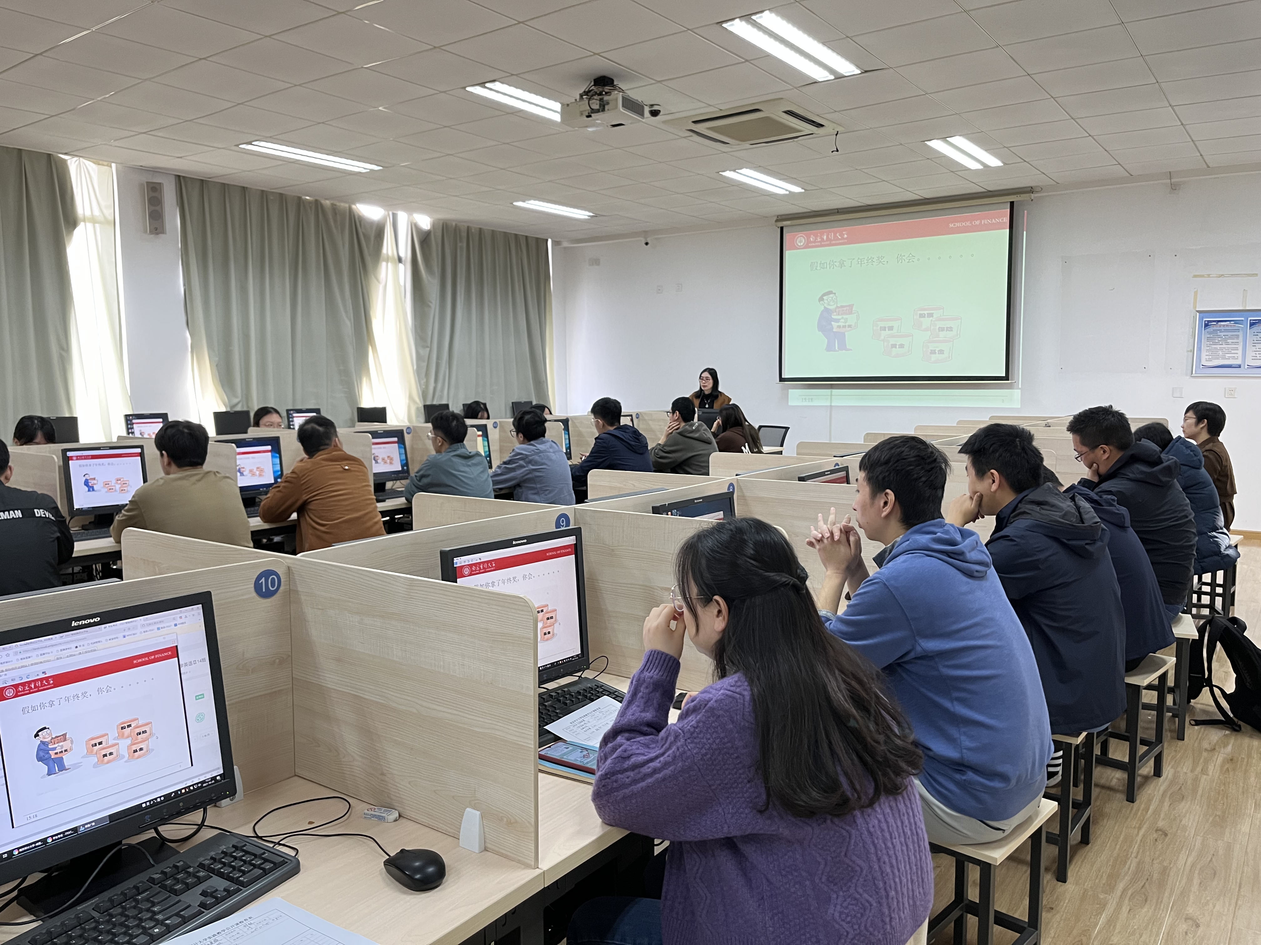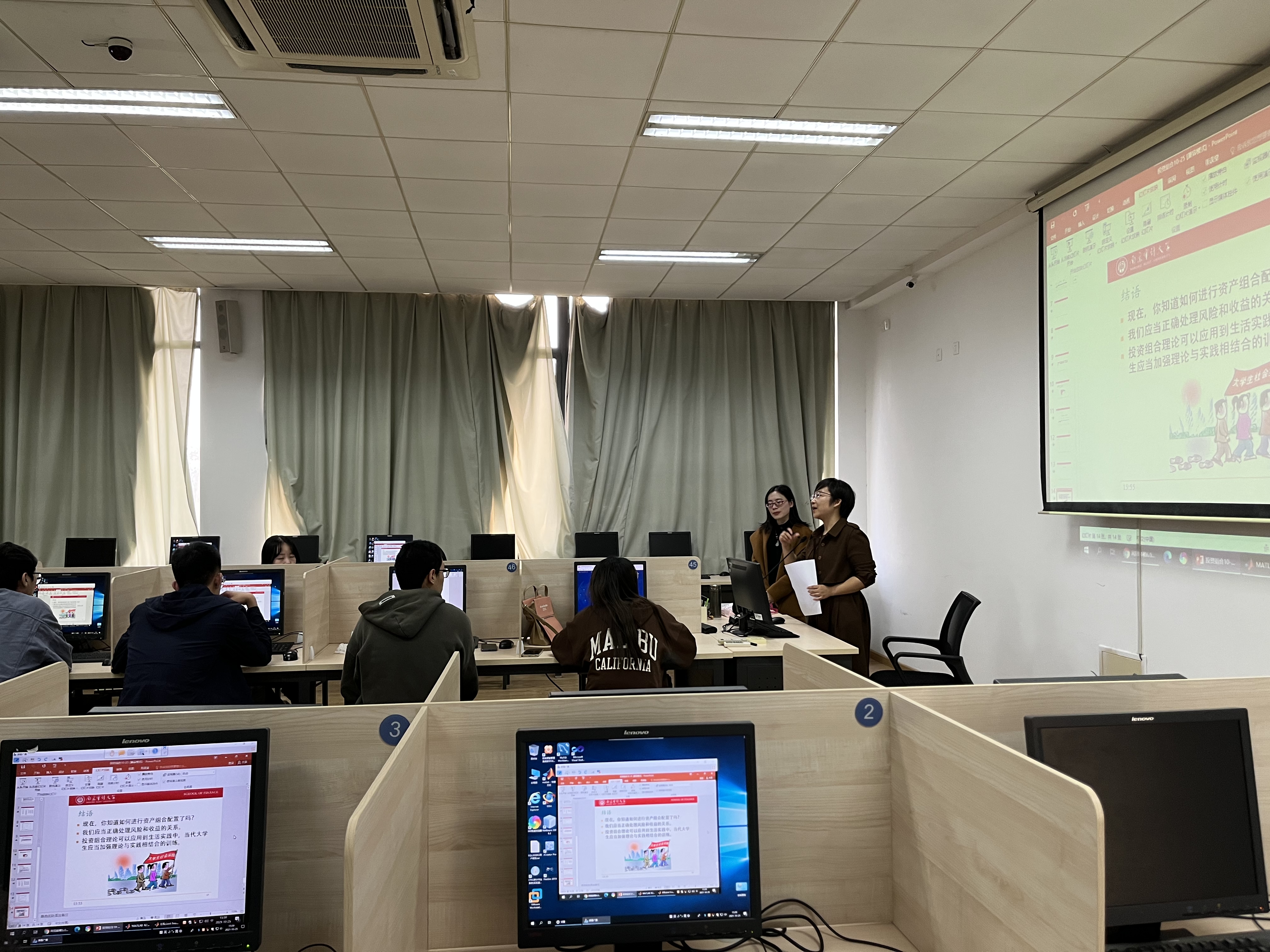 2021年10月25日下午,怡红院 组织教师在竟秀楼南楼s302机房集体观摩金融工程系邢钰老师的“Matlab与金融建模”课程,刘妍副院长、学院教务办和8位学院教师参加。邢老师精神饱满,授课思路清晰,采用案例分析等方法,并适度拓展,师生互动频繁,课堂气氛活跃,授课效果良好。学院姜勇、李杰老师和邢老师就课堂教学进行交流,刘妍副院长进行点评。