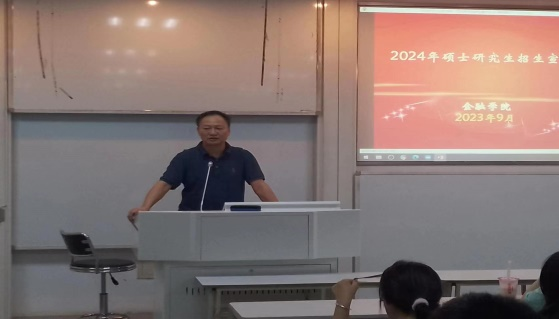 刘骅用真实数据和案例讲解了当前考研的形势以及不同高校硕士研究生招考录取的变化情况,介绍了培养学制、各类奖助学金政策以及备考复习方法,希望同学们积极报考。严伟祥结合2024年硕士研究生招生简章和目录,介绍了学院金融学硕和金融专硕研究生教育基本情况和培养特色,以及金融学硕和金融专硕研究生往年的录取情况,分析了两者初试考试科目的区别。罗琰介绍了去年保险专硕研究生招生录取情况,详细说明了报考我校保险专硕的优势。