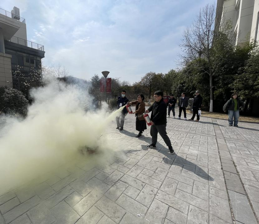 随后,校保卫处相关人员对干粉灭火器的正确使用方法进行了讲解、示范,强调使用灭火器时要保持镇静,牢记“一晃,二拉,三压,四喷”的要领。接着,学院组织教职工进行灭火实操,对现场模拟火点进行灭火操作,在实操训练中进一步提高了教职工的消防安全技能。