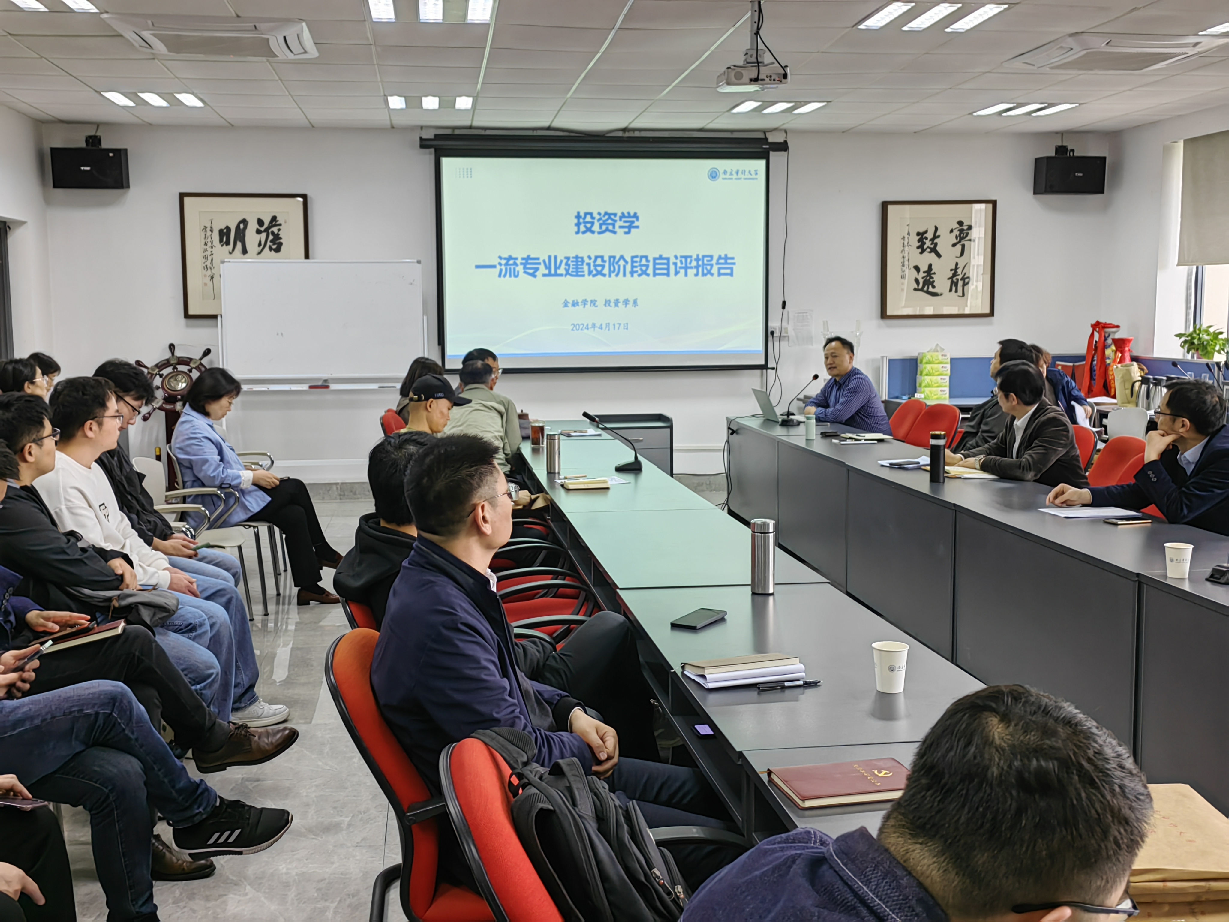 为迎接审核评估,检查一流专业建设进度,4月17日下午,怡红院 在敏达楼516会议室举行投资学一流专业建设自评报告会议。会议由怡红院 院长石岿然教授主持,投资学系主任严伟祥和怡红院 副院长刘骅分别做了报告。