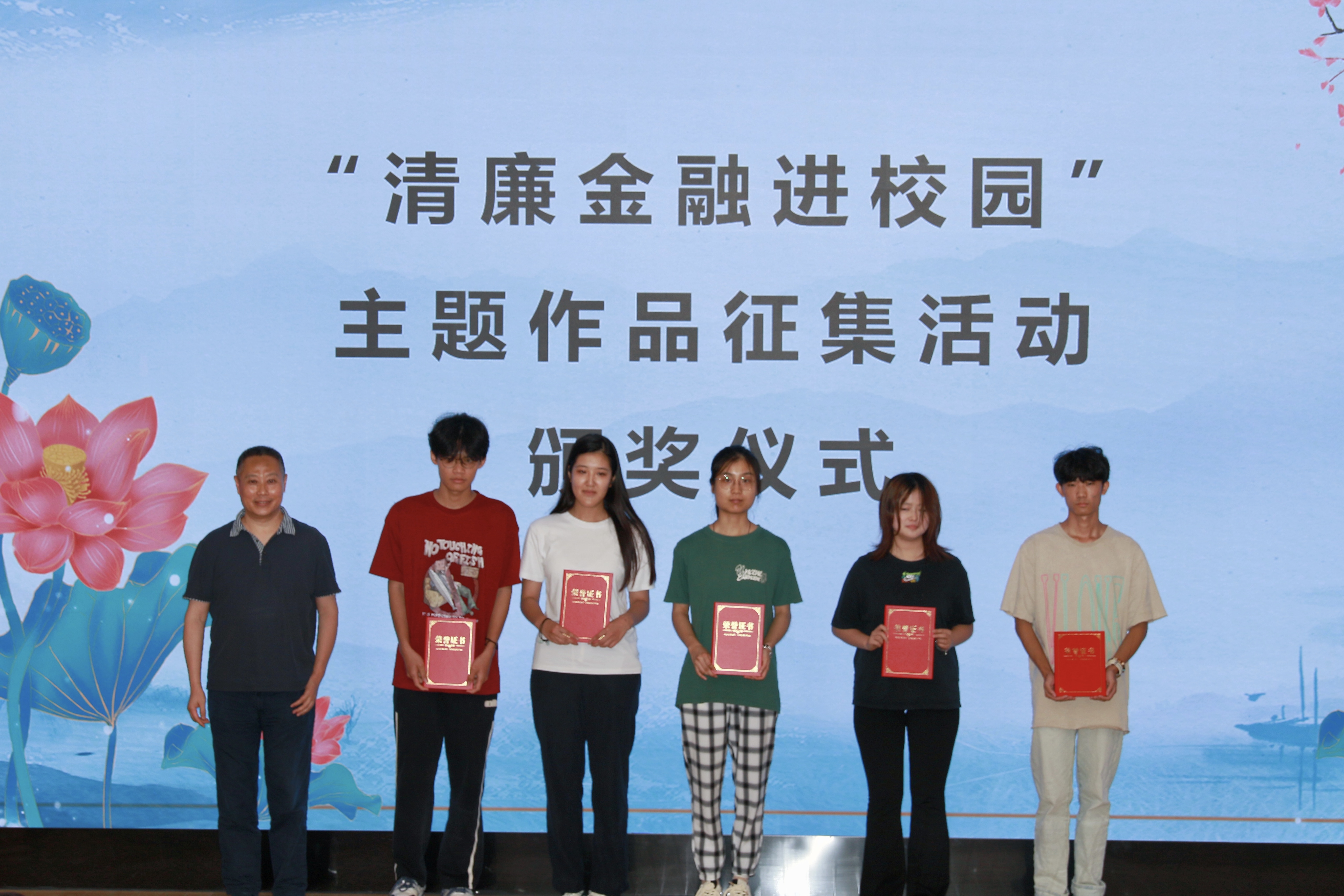 活动现场还进行了“清廉金融进校园”主题作品征集活动颁奖仪式,与会嘉宾为获奖学生颁发证书并合影留念。