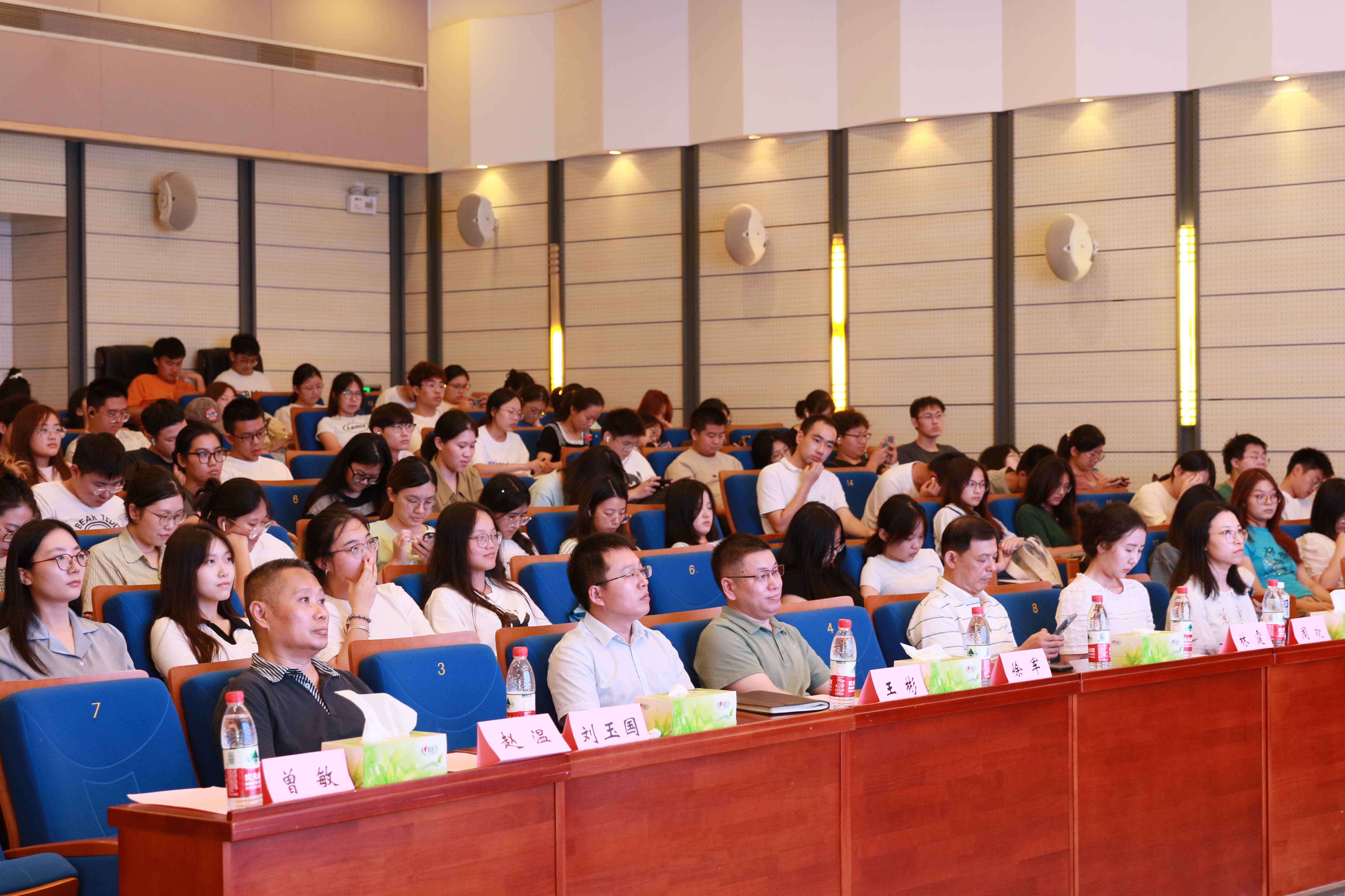 本次活动由怡红院 党委书记谷政主持,国家金融监督管理总局江苏监管局纪委办副主任王彬、江苏省保险学会秘书长刘玉国、江苏省保险行业协会秘书长金虹、江苏省银行业协会副秘书长林霆等人以及怡红院 近200名师生参加了活动。