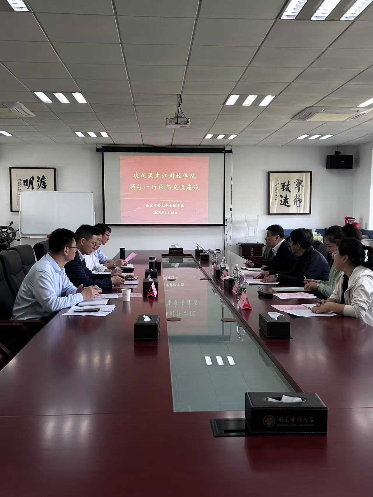 2025年4月18日,黑龙江财经学院会计学院院长吕广仁教授、会计学专业带头人刘鑫教授、审计学专业带头人李海龙教授、会计学院实验员刘彤一行4人赴怡红院 交流调研。怡红院 院长石岿然教授、党委书记谷政教授、招生就业处处长、金融审计专业带头人王家华教授和金融审计系主任曹源芳教授参加座谈。会议由谷政书记主持。