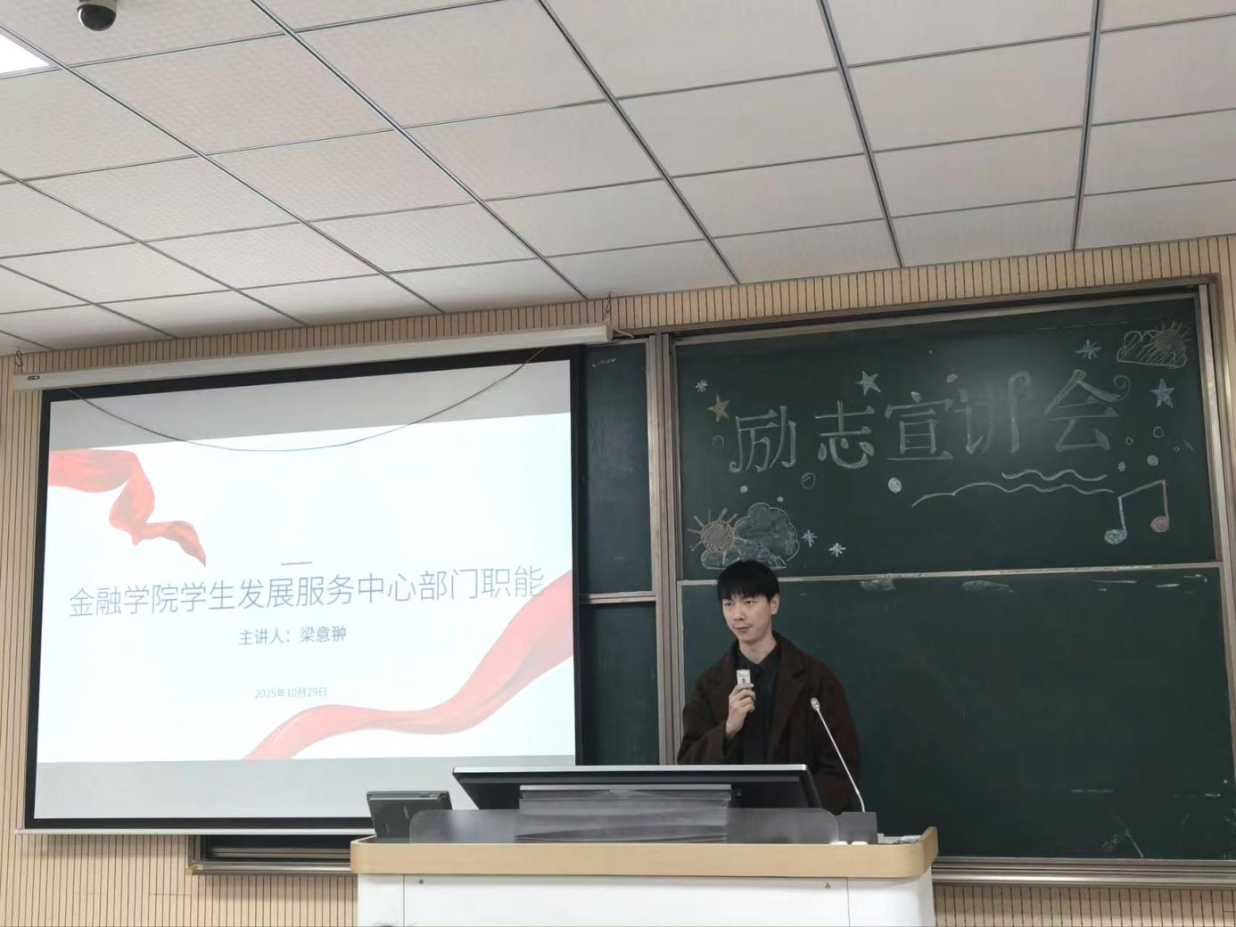 2025年10月29日,怡红院 于致远楼403教室开展了“励志计划”宣讲会。学生工作办公室主任张汉强、负责资助专项的老师缪杰杰、学生发展服务中心成员及学院100余名家庭经济困难学生共同参加本次活动。