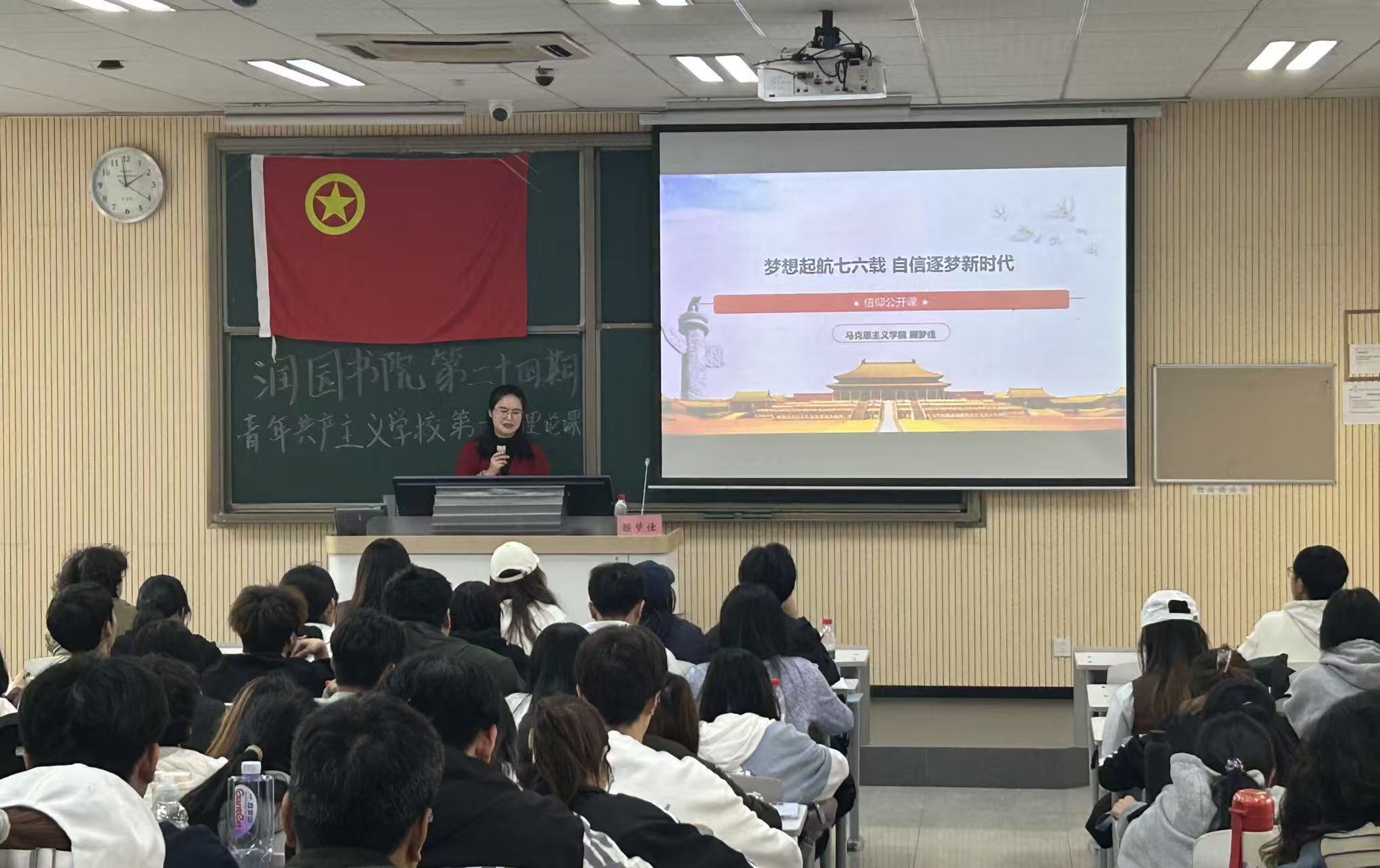 为引导青年学子从建国七十余载的奋斗历程中汲取信仰力量,坚定理想信念,10月29日下午,由怡红院 与工程审计学院一同举办的“梦想起航七六载,自信逐梦新时代”主题信仰公开课圆满结束。本次活动特邀马克思主义学院顾梦佳老师担任主讲人,为在场学子带来一场兼具思想深度与历史温度的讲座。