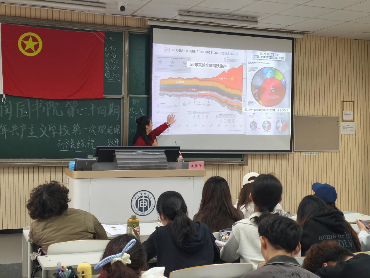 活动伊始,顾老师首先向我们介绍了新中国成立后,以毛泽东为核心的共产党人建立起人民民主专政政权,确立的人民代表大会制度、中国共产党领导的多党合作和政治协商制度、民族区域自治制度,推动国家从新民主主义社会逐步过渡到社会主义社会。历经70余年的实践检验,这些制度的优越性已得到充分印证。接着阐述了毛主席领导时期的现代化建设成就:建成独立完整的工业体系,让我国从“造不出螺丝钉”跃升为工业大国;筑牢农业基础设施、打造含“两弹一星”的国防体系,科技、医疗教育事业快速发展,人均寿命提升、文盲率下降,同时完成基层政权组织建设,为国家“站起来”筑牢根基。