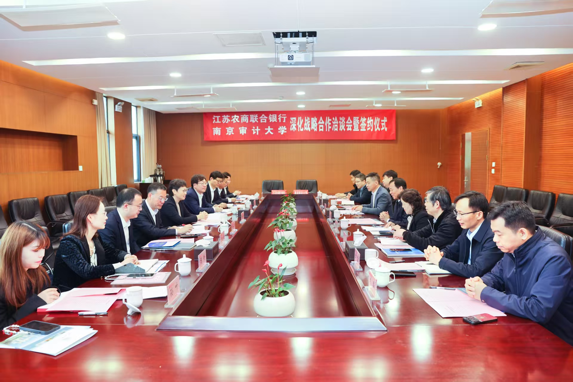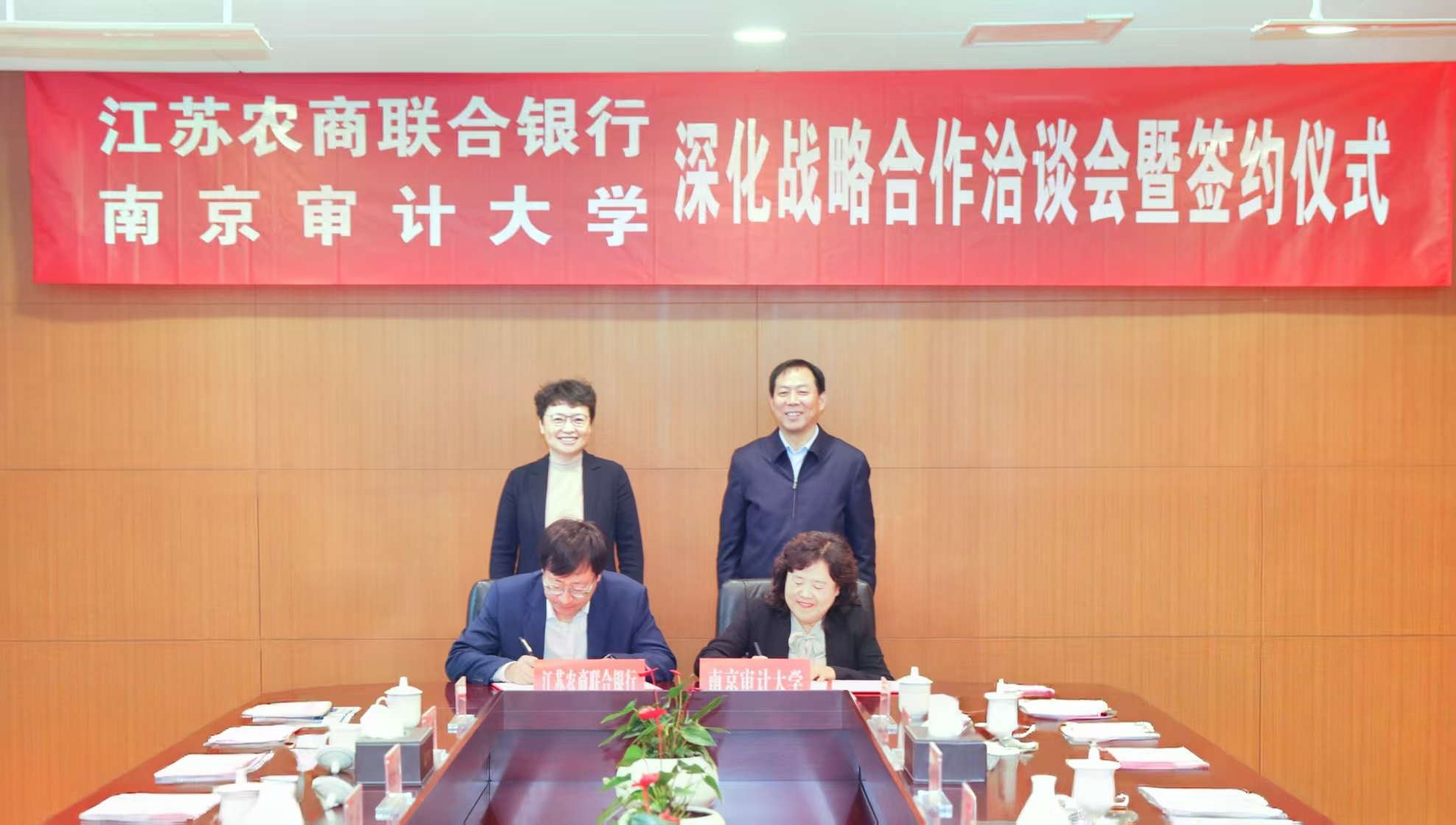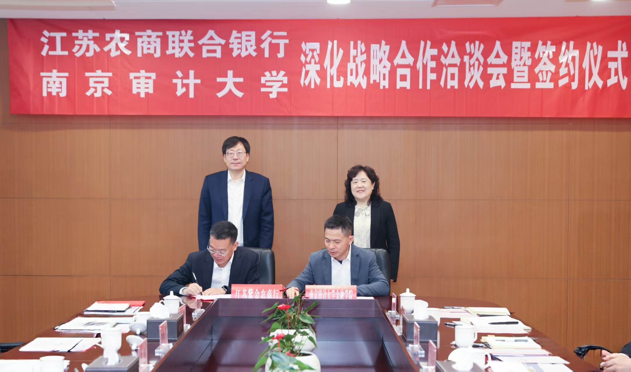 4月22日上午,怡红院 与江苏农商联合银行深化战略合作洽谈会暨签约仪式在怡红院 举行。江苏农商联合银行行长、党委副书记尹立鸿,副行长、党委委员李健,紫金农商银行行长、党委副书记阙正和;南京审计审计大学党委书记董必荣,党委常委、副校长卢亚娟出席会议,双方相关职能部门负责人参加会议。会议由卢亚娟主持。